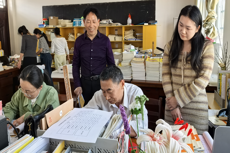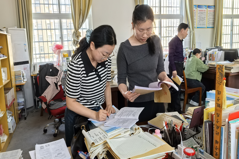 随后,视导组成员深入到九年级办公室,对作业批改、教案撰写、听课记录以及业务档案等进行了全面检查。他们详细了解毕业班教师的备考情况,关注教研组的校本研修进展,并对教学、教研、备课等各个环节进行了全方位调研。通过检查,视导组对学校的教学教研工作有了更深入、更全面的了解。