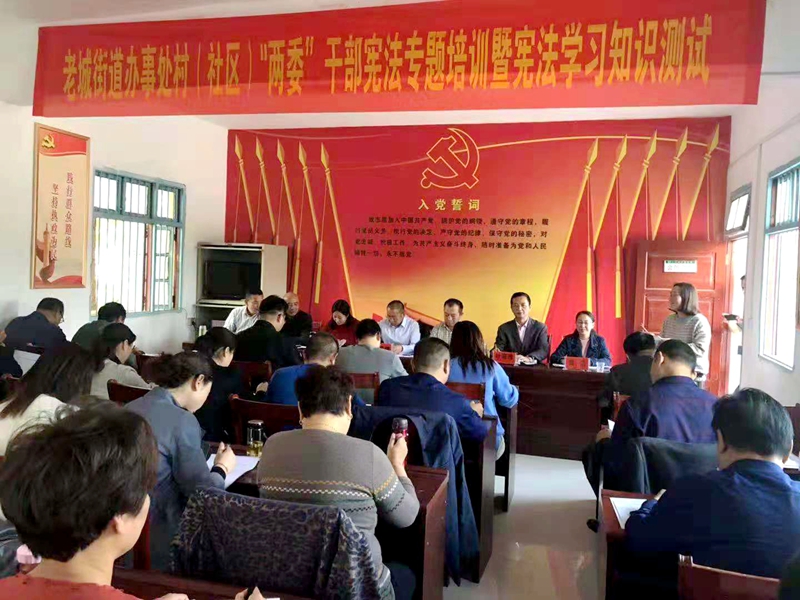 潢川网讯(王红)在脱贫攻坚调度会召开后,2018年10月24日下午,潢川县老城街道办事处继续召开了村(社区)“两委”干部宪法专题培训暨宪法学习知识测试工作会。