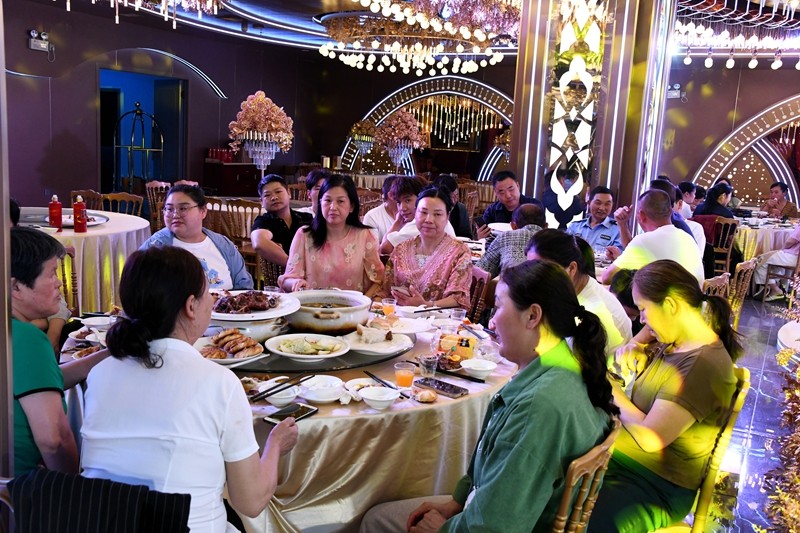 晚宴在热烈的氛围中拉开帷幕,酒店董事长曹全辉发表了热情洋溢的致辞。他首先剖析了当前国际国内的经济形势,特别提到了关税战以及日益激烈的市场竞争。在这样的大环境下,明珠国际大酒店能够顺利完成升级改造,实属难能可贵。他满怀深情地感谢每一位员工在升级改造过程中无怨无悔的辛勤付出,同时也对默默支持员工工作的家人们表达了诚挚的谢意。曹董事长表示,正是全体明珠人凝心聚力、砥砺前行,才为酒店赢得了崭新的发展机遇。展望未来,大家将继续携手并肩,向着更高远的目标奋勇迈进。