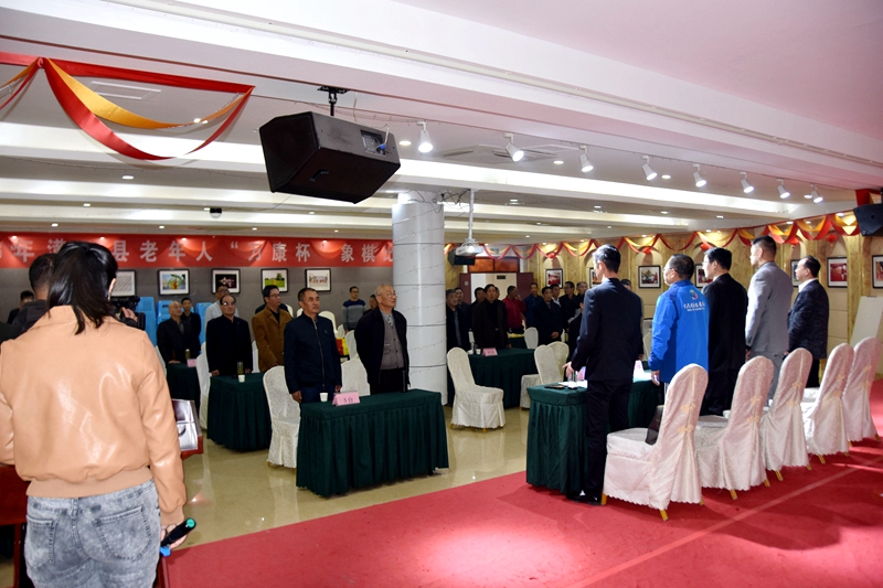 开幕式在雄壮的国歌声中拉开序幕。崔青福对前来参赛的各位棋友表示欢迎,本次比赛赞助单位万康大爱城运营总监王兴全致欢迎词,庞志巍宣读了《竞赛规程》和注意事项。