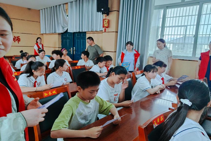 本次活动特邀胡潜团队心理咨询师王丹担任主讲。活动伊始,王丹通过少女与老妇错觉图、鲁宾酒杯人面图等心理学图片开启热身游戏,轻松活跃了现场气氛,让孩子们喜笑颜开,放下拘束,迅速进入状态。结合“考试焦虑”“母女争执”等四个生活化小事例,带领孩子们演练“自我减压”“换位思考”等情绪调节技巧,孩子们踊跃分享自己的“情绪故事”,在游戏中掌握了一系列有效应对生活挑战与学习压力的方法和技巧。活动尾声,社区志愿者向参与的青少年发放防溺水和反电诈明白卡,通过图文并茂的宣传单页强化青少年的安全自护意识。