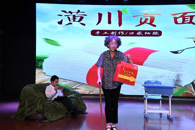 本次展演以“用英语讲潢川故事”为主题,巧妙融合潢川本土特色。新淮南茶及优雅的茶艺,散发着独特香气的老万家板栗,细如发丝的空心贡面,鲜香可口的双柳鱼丸,让人垂涎欲滴的潢川热干面,软糯香甜的潢川瓦儿糕,以及充满传统韵味的皮影戏等丰富的本土特产及文化元素,都被学生们精心转化为舞台上精彩纷呈的英语短剧、饱含深情的诗歌朗诵和活力四射的歌舞表演。舞台上,学生们发音标准流利,生动讲述潢川故事,将台下观众带入一个个充满魅力的家乡场景。
