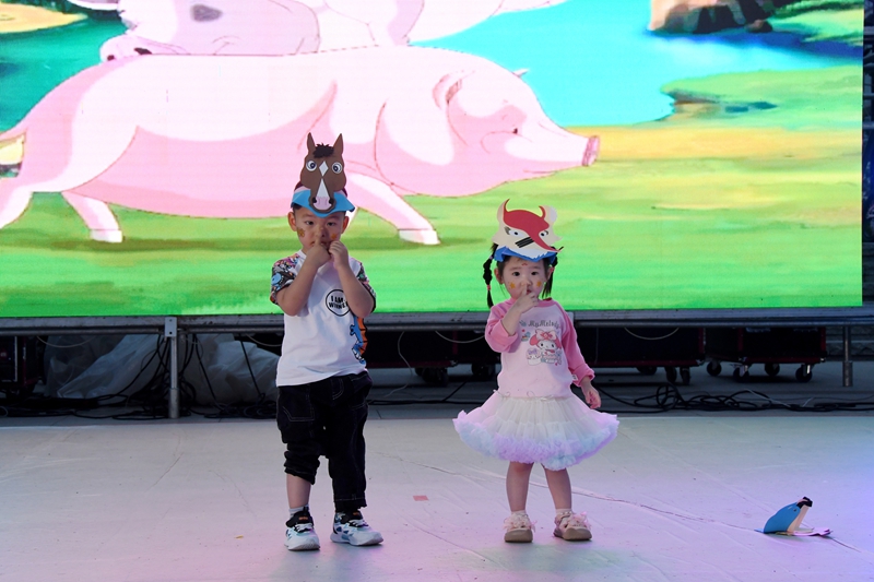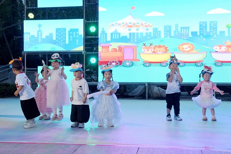 活动在开场歌舞《我的未来不是梦》中拉开帷幕,老师与家长携手登台,以充满激情的表演点燃了全场的热情,也为孩子们树立了积极向上的榜样,传递了对未来的美好憧憬。接着,各班级宝贝们依次登台,向阳班宝贝们化身春日里娇艳的花朵,用《小花朵》的灵动舞姿诠释童真;彩虹班的《游呀游》生动演绎小鱼嬉戏的欢乐场景;清华班《加油呀》的动作整齐有力,尽显活力;云朵班的《小动物叫声》以其可爱动作与模仿引发阵阵欢笑;浩宸教育老师们精心策划的《奥特曼恐龙大作战》巧妙融入动漫元素,让现场化作欢乐海洋,孩子们在游戏互动中收获快乐、增进友谊。随后,星星班的《小水花》、小一班的《小鱼吐泡泡》、中二班的《听我说》、大一班的《一年级》等节目接续上演,孩子们用稚嫩却真挚的表演,展现出对生活的热爱与对成长的期待。最后,全体人员共同参与集体合唱。