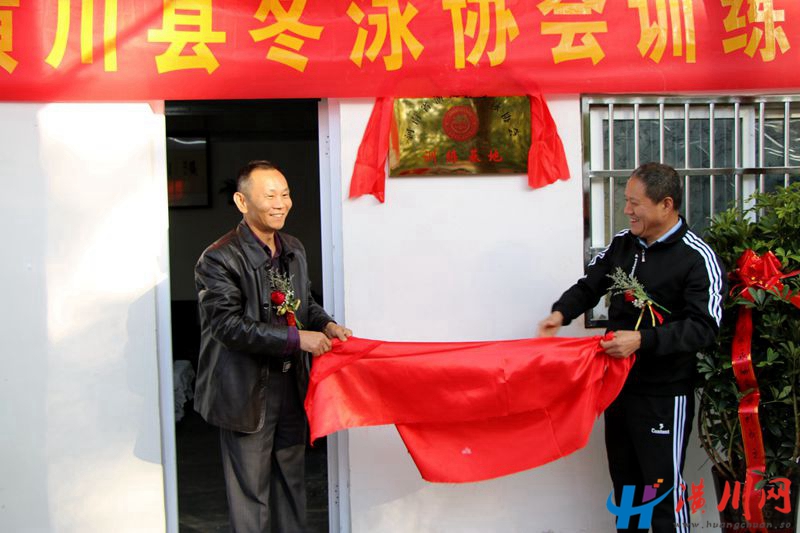 仪式中,县人大副主任邱召健、县政协党组成员徐文强为冬泳训练基地揭了牌。