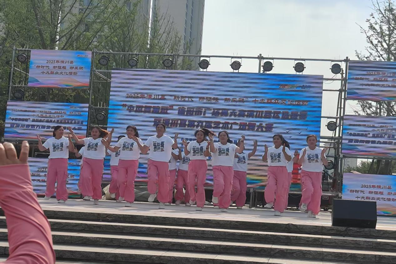 付店镇时光舞蹈队的参赛作品《中国梦》和晏庄村舞蹈队的参赛作品《祝福祖国》,以匠心独运的舞蹈编排在赛场上交相辉映。表演者们以优美的身姿、灵动的舞步,将健康时尚的现代气息与对祖国的深情祝福完美融合。伴随着欢快激昂的旋律,他们神采飞扬,每一个转身、每一次跳跃都饱含深情,既展现了新时代群众文化的蓬勃生机,又彰显了全镇人民积极进取、乐观向上的精神风貌。两支舞蹈作品犹如绽放的双生花,用艺术的语言诉说着对美好生活的向往与追求。