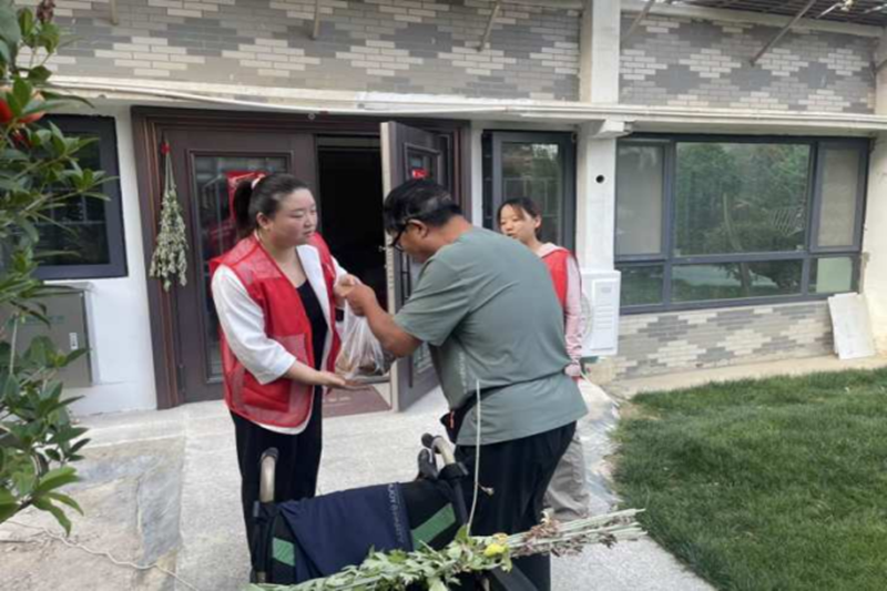 包粽结束后,社区工作人员将粽子蒸煮完毕,支部书记朱敏带领社区工作人员走访辖区内孤寡老人、残疾人家庭、退役军人、老党员。每到一户,她都亲手递上热气腾腾的粽子和寓意驱邪纳福的艾叶,细心询问他们的生活近况,叮嘱注意身体健康。收到这份饱含关怀的节日礼物,居民们感动不已,拉着她的手连连致谢:"谢谢社区一直惦记着我们,让我们感受到了家的温暖。" 温馨的场景让传统节日的温情在社区内流动传递。