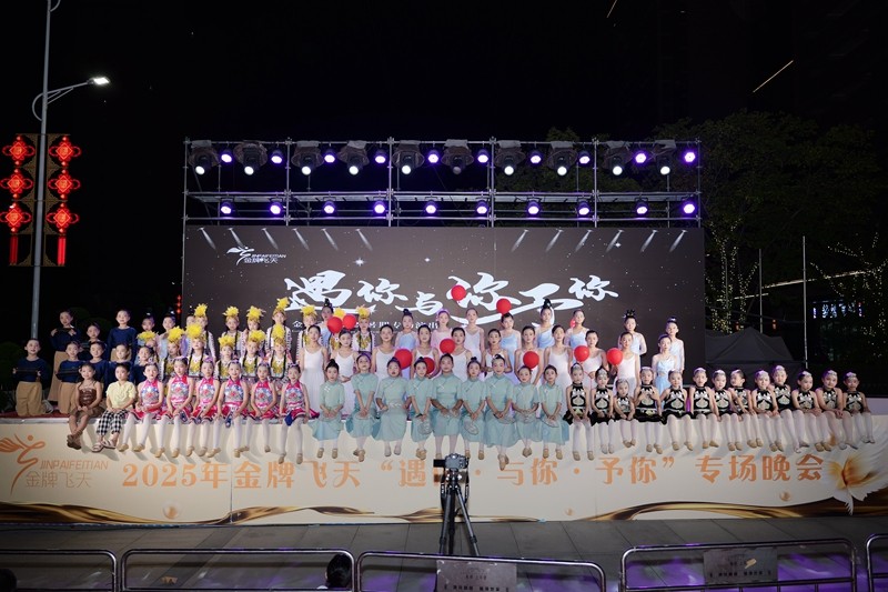 本网讯 2025年8月17日晚,潢川县金牌飞天举行2025年“遇你·与你·予你”暑期专场舞蹈晚会。晚会以舞蹈为纽带,通过“遇你”“与你”“予你”三大主题篇章,深度演绎了舞蹈艺术的独特魅力与情感共鸣,为现场观众呈上了一场视觉与心灵的双重盛宴。
