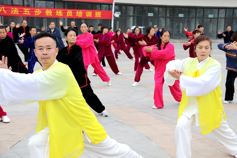 潢川网讯(张礼军 瓮启兵)根据国家体育总局武术中心关于推广普及太极八法五步的文件精神,为充分发挥太极八法五步在全民健身活动中的作用,11月3-4日,潢川县武术协会在清水湾大门口东广场举办了太极“八法五步”教练员培训班。全县各太极拳站点教练员代表和武协领导成员共计80余人参加了此次培训。