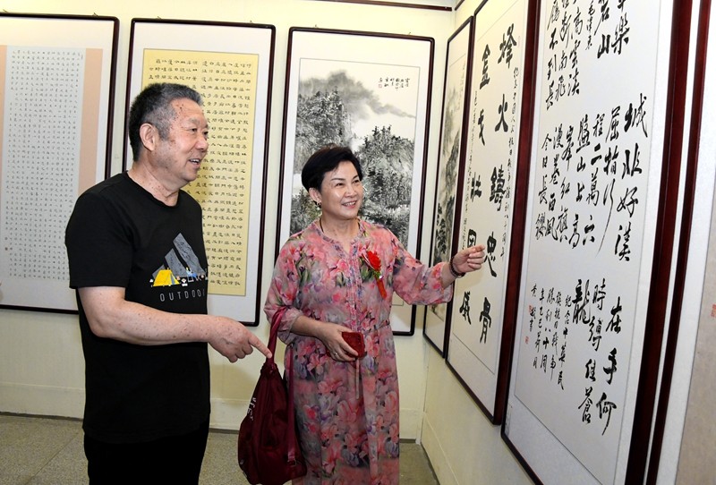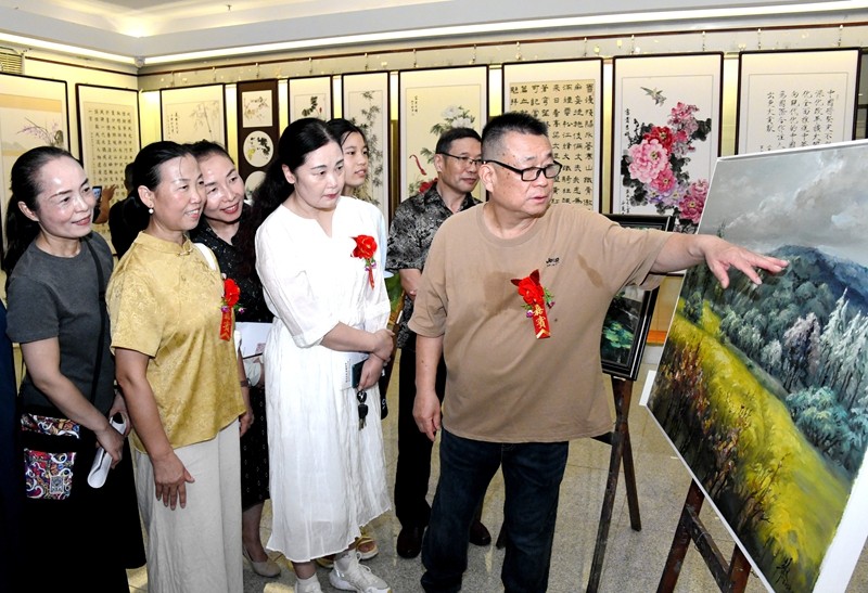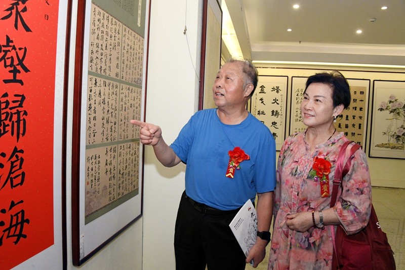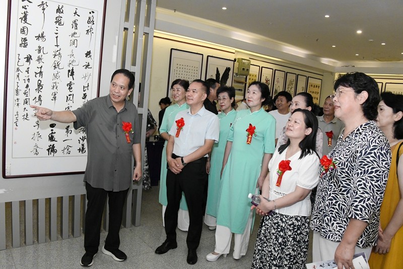 开展仪式上,气氛庄重而热烈。县老年书画研究会会长吴蕴华致辞,他结合老年书画爱好者的创作初心,谈到此次展览不仅是老干部们以笔墨寄怀的情感表达,更是以艺术形式传承红色基因的责任担当,希望通过一幅幅作品,让观者在墨香中感受历史的厚重。县文联党组副书记、副主席王瑛琳表示,文艺是时代的号角,此次书画展以“铭记与珍爱”为内核,既展现了老干部们的艺术风采,更彰显了文艺工作者铭记历史、赓续精神的使命,为全县文艺事业注入了深沉的家国情怀。