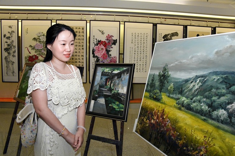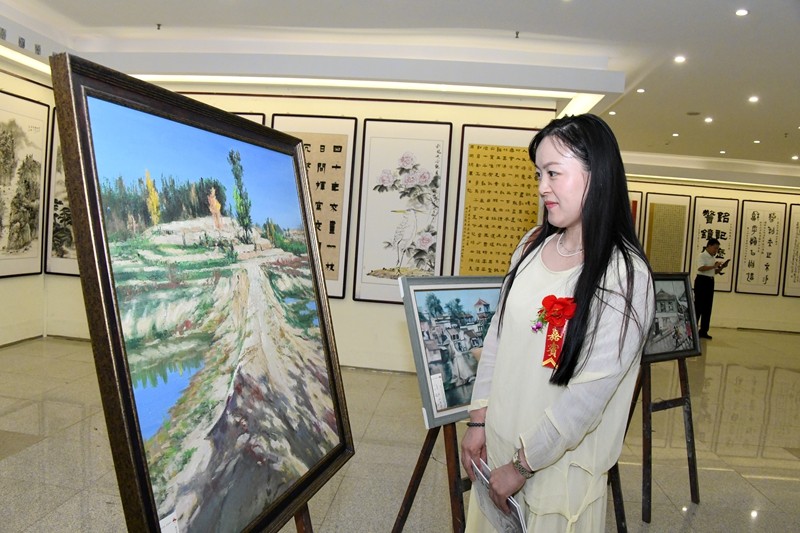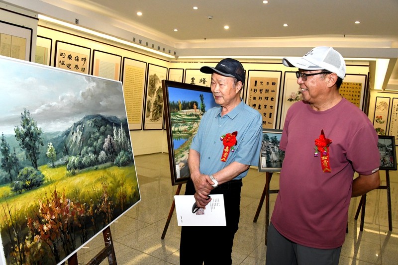 仪式结束后,与会人员怀着崇敬的心情走进懒悟纪念馆参观展览。展厅内,一幅幅书法作品或笔力遒劲、气势磅礴,或古朴厚重、意蕴深沉,“还我河山”“铭记历史 珍爱和平”等字样饱含着对历史的铭记;绘画作品则以生动的笔触再现了抗战场景中军民同心、浴血奋战的画面,人物神情坚毅,场景历历在目。老干部们以独特的艺术语言,将历史记忆与家国情怀浓缩于笔墨之间,让观者在欣赏艺术之美的同时,再次被那段不屈的历史所震撼,更深刻地体会到“铭记历史、珍爱和平”的厚重内涵。