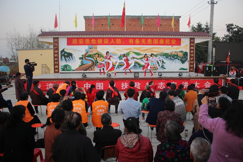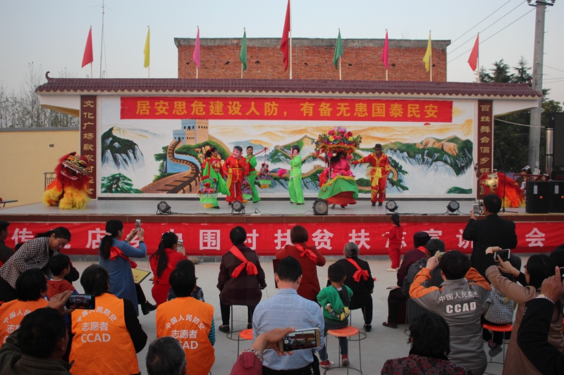 活动中,对中围村评选出的帮扶之星、脱贫创业户、环境卫生户等十二位先进个人进行了表彰,帮扶之星付德堰在现场和大家分享了自己的帮扶和脱贫经验。随后,中围村舞蹈队自编自导的广场舞热热闹闹的拉开了文艺表演的序幕;人防办自创的诗朗诵节目《时刻准备着》反映了潢川人防十三年的发展历程;歌舞剧《夸夸咱村新面貌》展现了新农村建设的新业绩、新成就、新气象;而节目中穿插的扶贫政策及人防知识有奖问答更是让台上台下互动气氛十足,热情高涨。