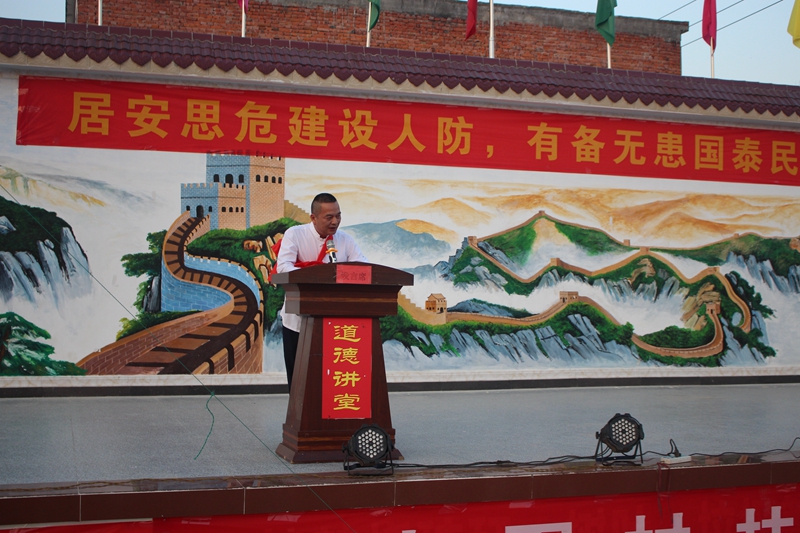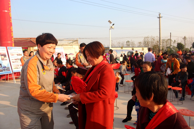 潢川网11月5日讯(戚阿东)为贯彻习近平总书记关于“扶贫要同扶智、扶志结合起来”的讲话精神,进一步激励脱贫致富带头人的示范引领作用,推动文明乡村创建活动扎实开展。11月3日,潢川县人防办联合传流店乡政府在该乡中围村开展了“人防走进乡村 助力脱贫攻坚”志愿服务活动。县人防办主任李东梅,传流店乡乡长李亮、乡人大主席晏杨、副乡长董春燕,中围村人防志愿者及村民代表共二百余人参加了活动。