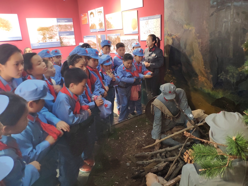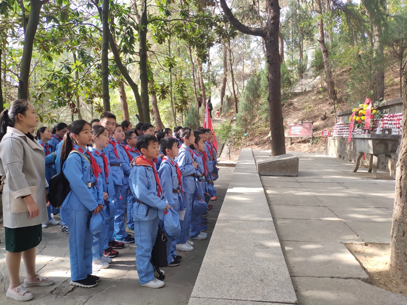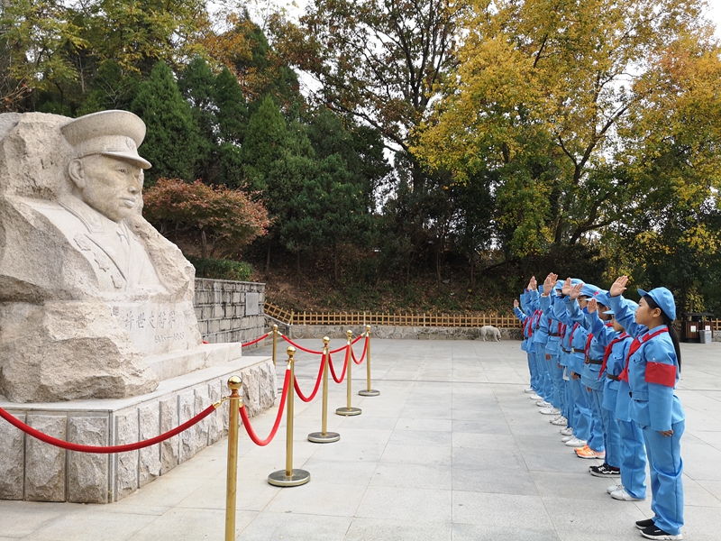 在许世友将军故里,参观了纪念广场、将军雕像、浮雕墙、将军生平事迹陈列室,览秀美山川,读将军忠国孝母、豪饮发言、武艺高强、赤胆忠心故事,感忠骨孝魂情怀,学习将军立党为公、无公无畏、襟怀坦荡、艰苦奋斗的优良品质和精神风范,内心充满了对将军和共产党人的无比敬仰。随后,同学们来到鄂豫皖苏区烈士陵园,参观了朱德、邓小平、李先念、徐向前、许世友、李德生、刘华清等党和国家领导人的亲笔题词及珍贵烈士遗物,凭吊了近百位著名烈士和红军首长遗骨及革命烈士陵园。在此,孩子们向烈士们进行了庄严宣誓。最后,大家来到了鄂豫皖苏区首府革命博物馆,通过观展,了解了鄂豫皖苏区的基本形成及发展历史,参观了馆内专题陈列,一部分是“将军的摇篮”——新县籍将军的事迹及省军级以上领导人的生平事迹;另一部分是“崛起的新县”发展历程和今日新面貌,同学们深深为这片神奇的红色土地所震撼。同学们还在红军使用过的武器旁拍照留念。