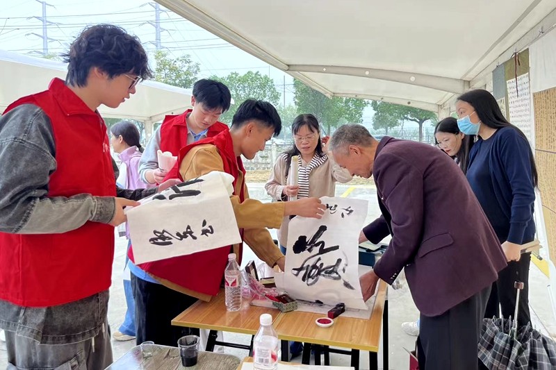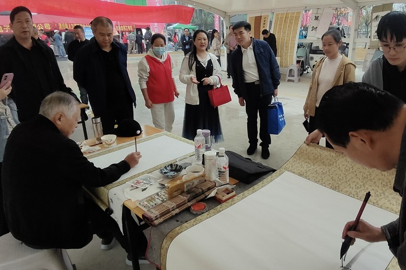 活动现场,文艺书画展区与乡村振兴的农产品展示相得益彰。石榴饱满柿子红、葡萄葫芦挂满藤;菊赞盛秋竹报安,五谷丰登好年景……县美术家协会、大别山农民书画协会以勾勒出乡村丰收图景,引得众人驻足;县书协、县老年书画研究会、县硬笔书协挥毫泼墨,作品既有《沁园春》的豪迈,也有“春种一粒粟,秋收万颗子”的辛劳;既有“耕云种月”的乡村浪漫,也有“尚志笃学”的人生感悟,更多的是对农村新变化、农业新发展、农民新生活的歌颂和赞美。书画文艺展演吸引了众多群众,从苍苍白发到活力青年,从农民朋友到商业精英,对书画作品的热爱和珍惜达成了共识。
