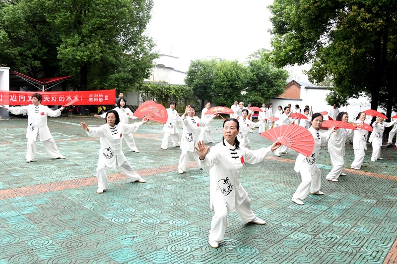 本网讯 值此中华人民共和国76周年华诞来临之际,为深化“全国科普月”活动内涵,丰富老年人精神文化生活,2025年9月27日上午,潢川县老科协携手潢川老年大学、县杨澄甫式太极拳学会、快乐之声艺术团,在潢川老年大学共同举办“全国科普月”科普健身展示活动。县老科协常务副会长苏振国,潢川老年大学校长魏继兵,国家级社会体育指导员、杨式太极拳第五代传承人、潢川县杨澄甫式太极拳学会会长李厚同及学会相关负责同志、研讨班全体拳友,快乐之声艺术团团长张旭升及艺术团骨干成员等近90人参加了此次活动。