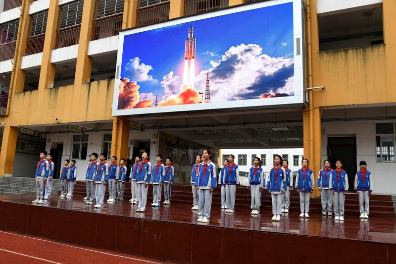 科技与艺术在此交融。三(5)中队带来舞蹈《星辰大海》,以灵动舞姿演绎探索的浪漫;六(5)中队则献上诗歌朗诵《科技托起中国梦》,用铿锵韵律表达对科技强国的向往,展现出科学与艺术融合的无限魅力。