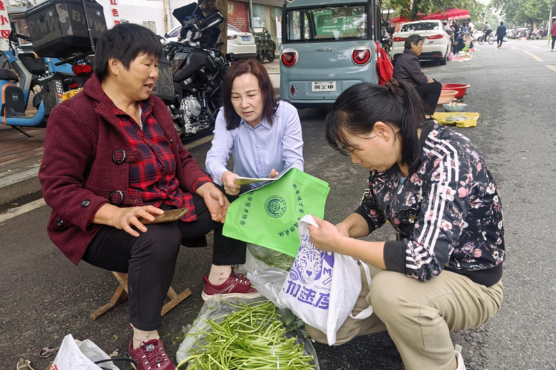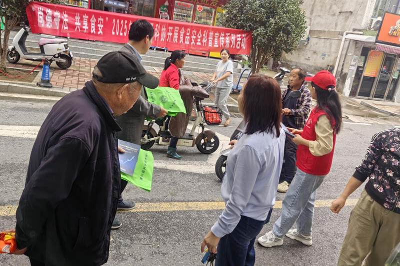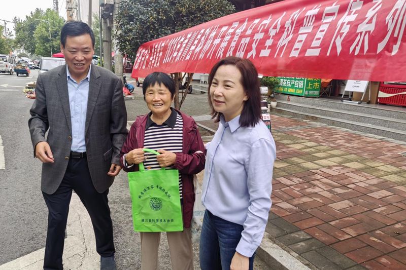 宣传现场,县科协党组书记、主席涂艾黎,副主席黄志斌带队“i科普”科技志愿者,结合社区生活与经营场所,针对社区居民,志愿者们围绕日常饮食需求、家庭食品储存、“散装食品该看哪些标识”“剩菜冷藏多久还能吃”等注意事项,用生活案例帮助大家理解;并提醒老年居民要警惕虚假宣传,引导大家建立科学饮食观念;针对菜场商户,志愿者们则紧扣“尚德守法”核心,解读食品经营相关法律法规,强调索证索票、进货查验、明码标价等经营规范的重要性,倡导商户坚守诚信底线、做到守法经营,从源头守护食品质量。同时志愿者们向社区居民和商户发放了环保手提袋、《食品安全常识手册》等,深受群众欢迎。