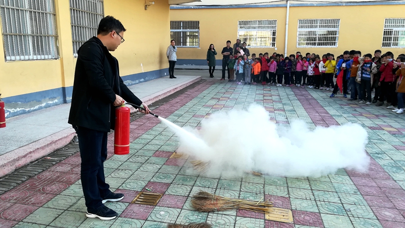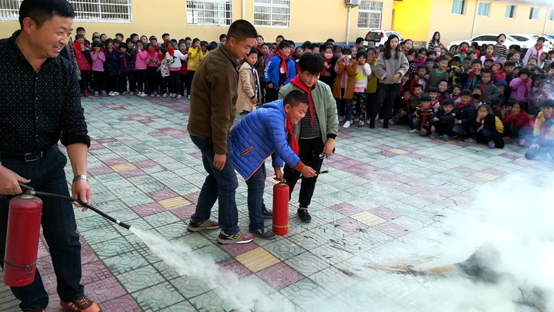 随后,该校分管安全曾军主任给全体师生详细讲解了灭火器的使用方法,并现场进行了演示,同时邀请了部分教师和学生上台体验使用灭火器灭火的过程;最后,该校负责人对此次消防应急疏散演练活动进行了总结。