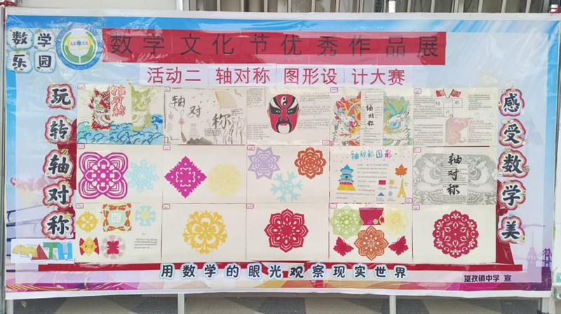 针对八年级学生本学期《轴对称》课程内容,特别策划“轴对称 图案设计”比赛,在“轴对称图形设计大赛”活动中,学生积极动手,制作出了形式多样的作品,孩子们拿起画笔,让数学之美跃然纸上!创作精美的轴对称图形,在色彩的铺陈与线条的勾勒中,直观感受轴对称的严谨规律与和谐美感。一剪一世界!学生们的巧手创作轴对称 剪纸作品,在纸屑纷飞间,体验轴对称的奇妙特性,将数学的理性之 美转化为充满灵性的传统艺术。