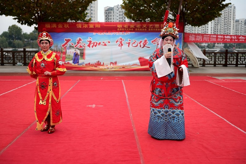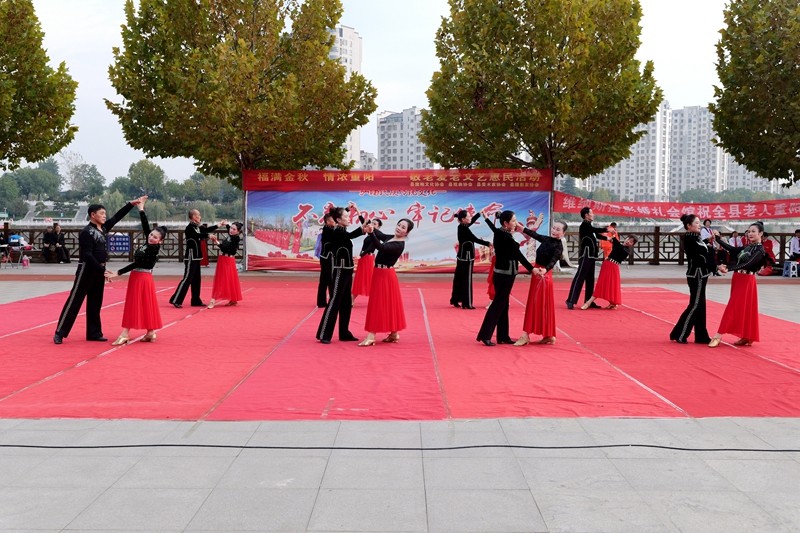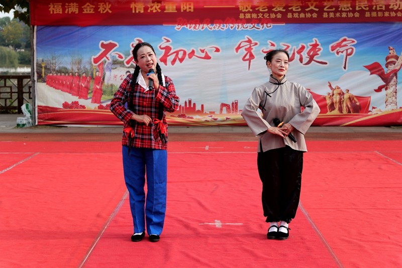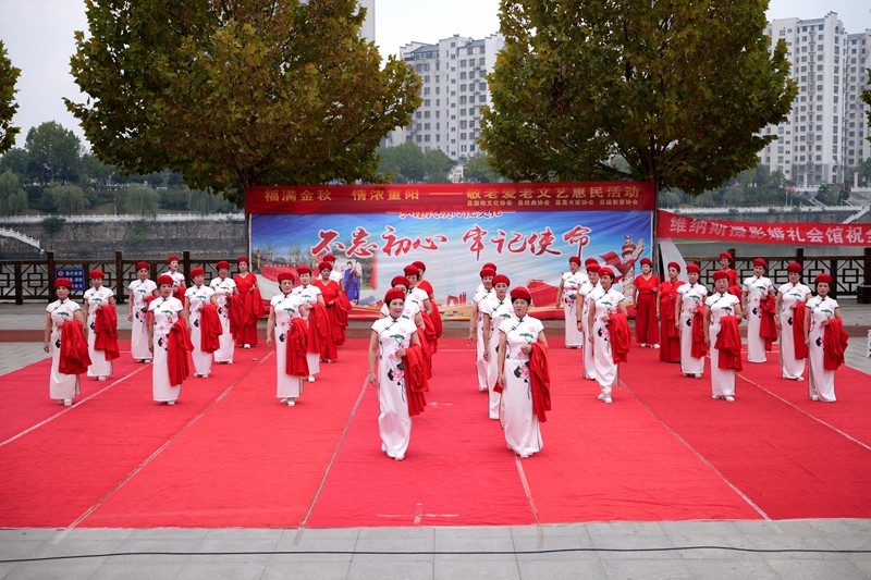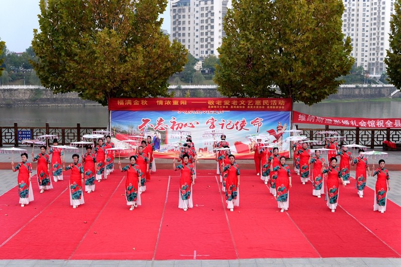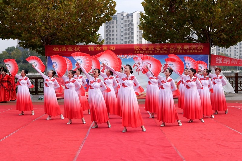本网讯(李健 蔡冯阳)金秋送爽,丹桂飘香。在重阳佳节来临之际,为弘扬中华民族尊老敬老的传统美德,10月29日下午,由潢川县文学艺术界联合会主办,县旗袍文化协会、县戏剧曲艺家协会、县摄影家协会、县美术家协会共同承办的“福满金秋 情浓重阳”文艺活动在滨河湾广场举行。县委网信办,县民政局,县文联,潢川之窗及各协会领导、众多文艺团队与广大市民欢聚一堂,共庆佳节。