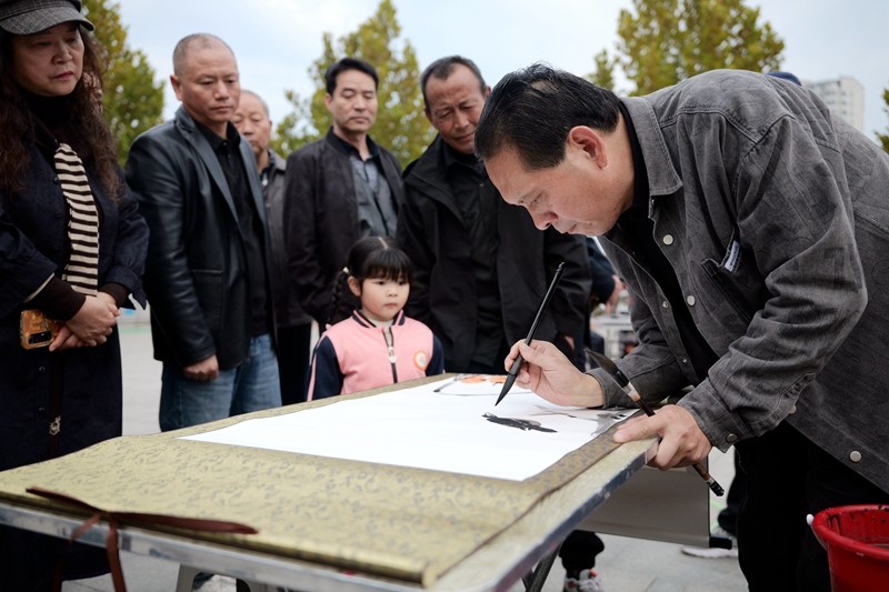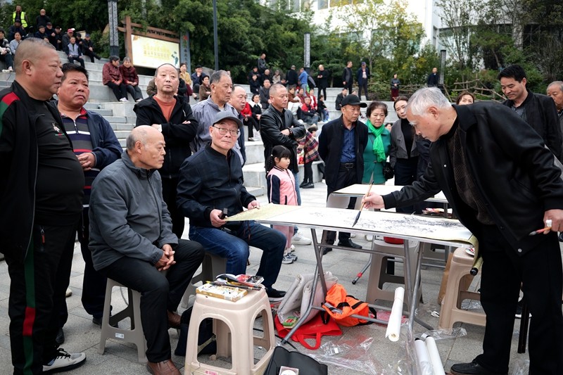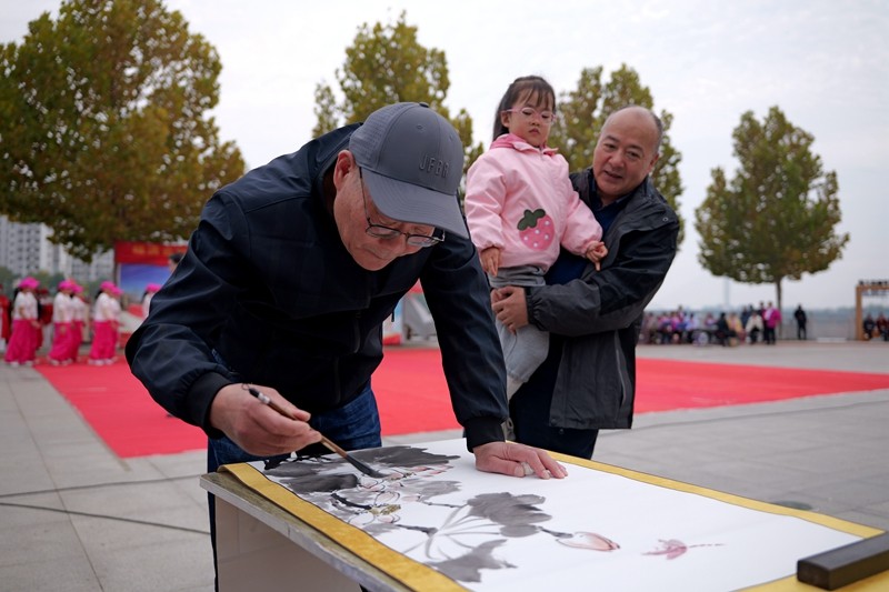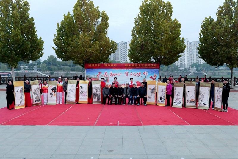 同时,县美术家协会的书画家们在一旁挥毫泼墨,即兴创作。他们以书画传情,用笔墨言志,为活动增添了浓厚的艺术气息。活动结束后,这些精心创作的书画作品被赠予各参演协会与团队及部分观众,以此留念,共同珍藏这份重阳佳节的美好记忆。