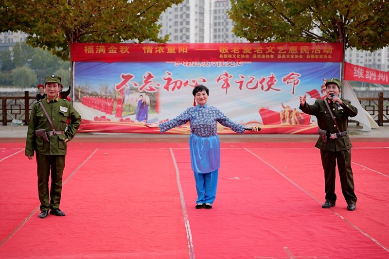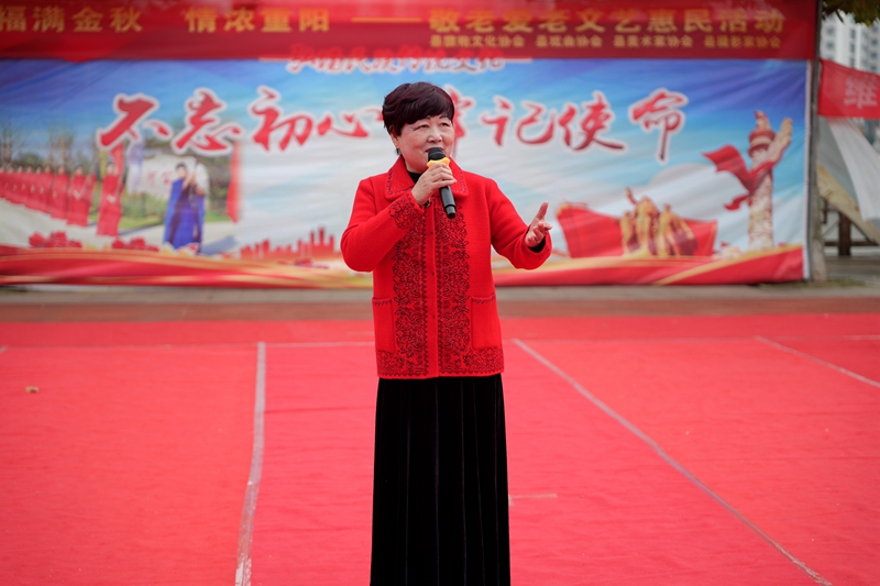 县文联副主席施俊奇在致辞中向全县老年朋友致以节日的诚挚问候。他强调,重阳节承载的不仅是健康长寿的美好祈愿,更是对长者毕生奉献的感恩与敬意。老年朋友是社会的宝贵财富,他们的智慧与经验如同秋日硕果,滋养着后辈成长。县文联将持续推进文艺惠民工程,让文化成果惠及更多老年群体。