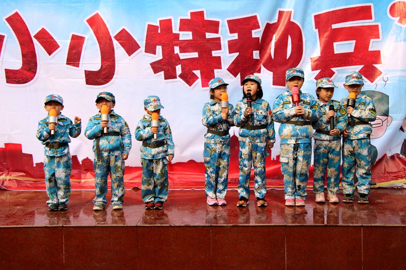 会场上,身着海陆空作战服的方阵列队整齐划一,幼儿和家长们严肃认真地听着长官的指令,走向运动场。全场新兵老兵面向国旗,举行了庄严的升旗仪式。该园园长万友丽致了开幕词,她表示,有国才有家,明珠幼儿园开办以来,始终坚持把孩子的素质教育放在首位,经常开展丰富多彩的活动,注重从小培养孩子们的爱国意识和良好品德,受到了社会各界和家长们的一致好评。接着,老兵宣誓、新兵宣誓、教官风采展示等环节依次进行。