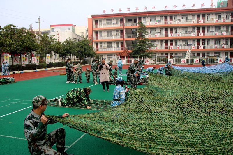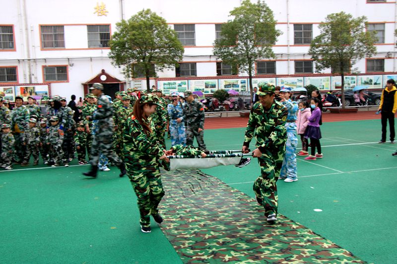 活动中,在教官和老师热情洋溢的带动和组织下,军事演习活动更是高潮迭起。孩子与家长们共同开展的“匍匐前进”、“铁甲战车”、“长条风洞”、“战地救援”等科目军事演习活动把整个运动会的气氛推向了高潮。