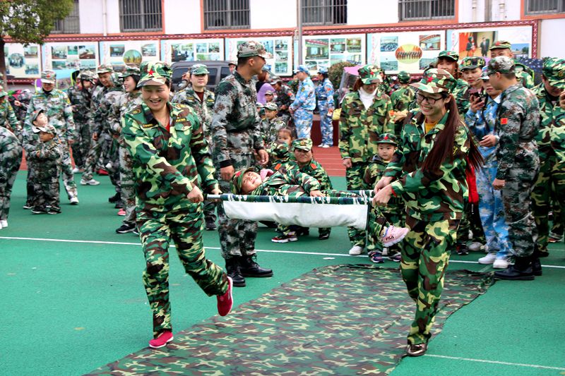 家长们与孩子们穿梭在老师们模拟的现代军事场地和游戏中,兴奋之情难于言表,大家共同享受着亲子运动会带来的快乐与幸福。演练结束后,新老兵进行拉歌,老兵们军歌嘹亮,新兵们掌声不断,歌声激起了大家的爱国主义情怀。最后,活动在该园教师的舞蹈中完美落下帷幕。