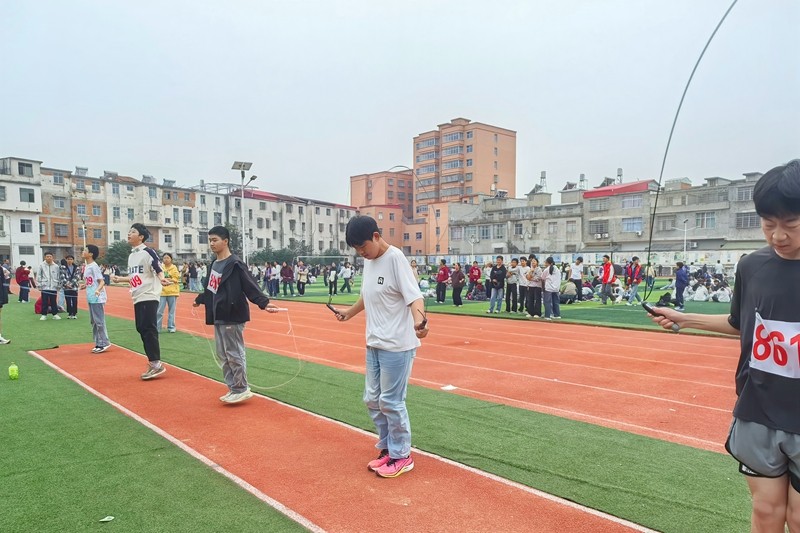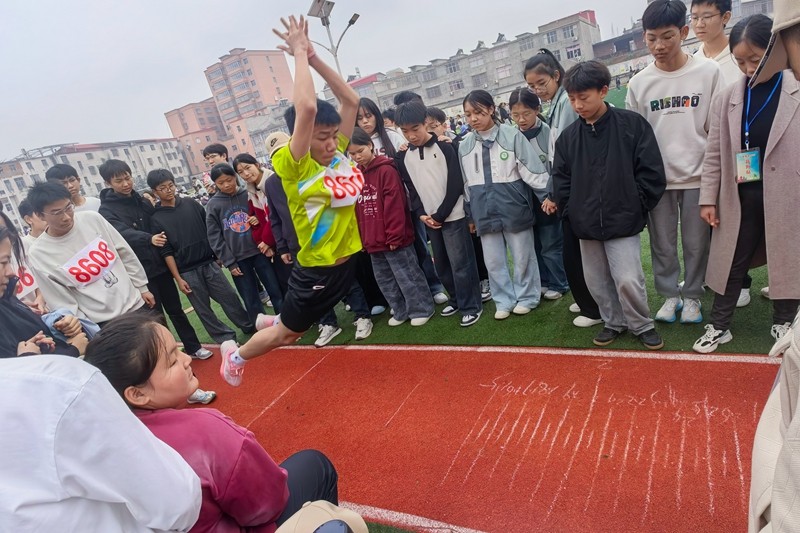 比赛期间,运动场上气氛热烈,精彩纷呈。短跑运动员如离弦之箭,在跑道上奋力冲刺;长跑选手们则凭借坚韧的毅力,在赛道上挥洒汗水;跳高、跳远场地上,一次次轻盈的腾空引来阵阵喝彩;实心球选手凭借着自己的力量与技巧在空中划出一道道优美弧线。其中,来自九五班的高顺赟以2.81米的优异成绩成功超越了原记录,赢得了全场赞叹。女子800米赛场同样激动人心,七五班的罗妍同学如疾风般奔跑,最终以2分57秒20的优异成绩打破记录。而在男子200米决赛中,程泽东同学凭借惊人的爆发力,以26.52秒的绝对优势,冲破了26.66秒的原记录,成为赛场瞩目的焦点。运动会开展过程中,裁判员们恪尽职守,公正裁判;志愿者们穿梭忙碌,提供周到服务;各班啦啦队的加油声、欢呼声此起彼伏,汇成了一曲动人的青春交响乐。