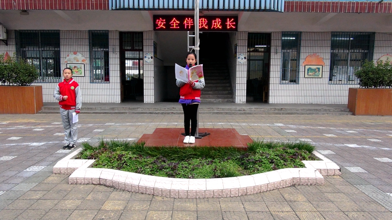 鲜艳的五星红旗伴随着庄严的国歌声冉冉升起。黄佳悦同学首先做了“安全伴我成长”主题演讲,倡导同学遵纪守法,遵守交通规则,自觉遵守公共秩序、社会公德和学校安全常规。少先队辅导员胡玲玲老师宣布了十月份各班量化成绩,校长刘敏军为获得流动红旗班级颁奖。最后,主抓学校安全的副校长李靖平对同学们进行食品卫生、体育运动、火灾火险、溺水、校园安全常规等方面的教育。