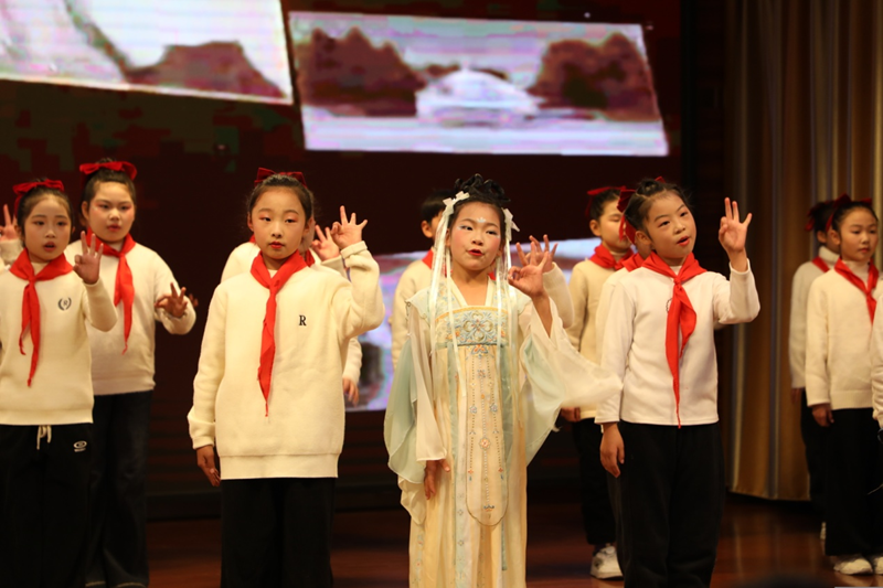 本次比赛突破了传统的诵读模式,融入音乐、舞蹈、表演等多元艺术元素,尤其是四三班在演绎《精卫填海》和《朝代歌》时,小选手化作精卫鸟翩翩起舞,跨时空的吟诵,赢得了全场掌声。