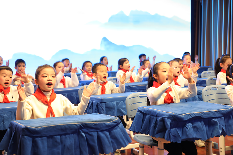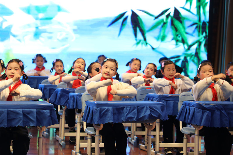 每个节目背后都凝聚着指导老师们的心血,吕玉兰、余丽、殷宏丽等老师们从古诗韵味的肢体表达,到现代歌曲的节奏卡点,以及课桌敲击的力度都与孩子们反复打磨,才让每个节目既整齐划一,又独具班级特色。