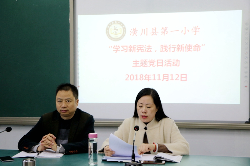 潢川网11月14日讯(刘静 张蓬)11月12日下午,潢川一小党支部在德润楼四楼会议室,开展了主题为“学习新宪法,践行新使命”的主题党日活动。