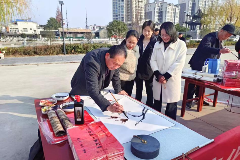 活动现场墨香四溢,年味十足。来自县美术家协会的书画艺术家们搭起工作台,挥毫泼墨,笔走龙蛇,一副副寓意吉祥、满载祝福的春联和国画作品跃然纸上,吸引了众多居民驻足欣赏、排队领取。各文艺团体带来了精彩纷呈的表演,独具韵味的民族舞蹈、节奏明快的地方曲艺,赢得了现场观众的阵阵掌声,展现了民族艺术的别样魅力。与此同时,华兰生物血浆站医务工作者设立了义诊服务点,为居民提供健康知识普及、基础筛查和公益宣传,将暖心服务送到群众身边。