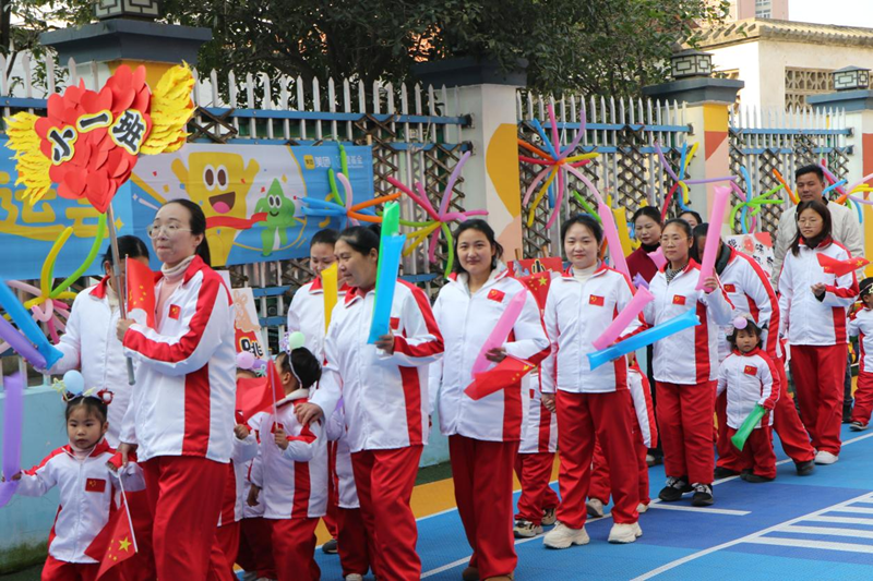 伴随着激昂的进行曲,运动会正式拉开帷幕。国旗护卫队的小队员们昂首挺胸、步伐坚定,守护着鲜艳的五星红旗率先入场,稚嫩的脸庞上洋溢着庄重与自豪。紧随其后的是各班家长幼儿方阵,孩子们牵着家长的手,精神抖擞地喊响班级口号,整齐的队伍成为操场上一道亮丽的风景线;热情洋溢的啦啦队挥舞着花球,用清脆的呐喊和欢快的舞姿,瞬间点燃全场热烈氛围。