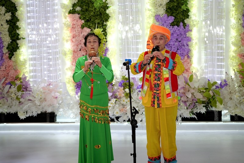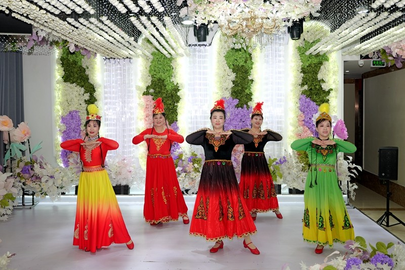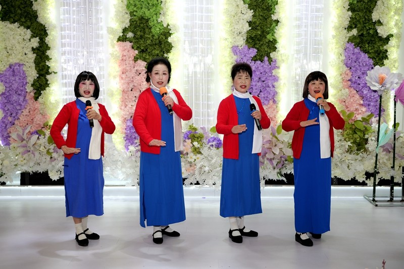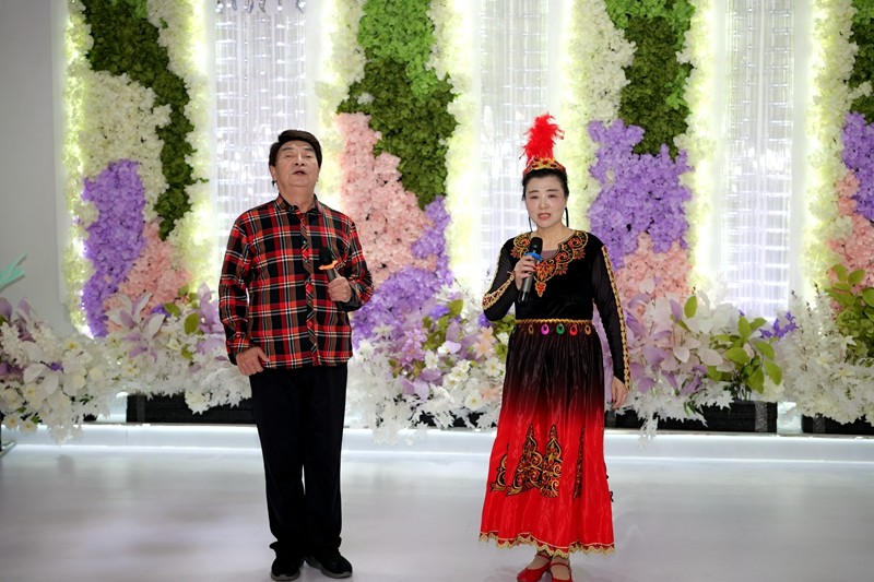 整场晚会节目形式多样、内容丰富多彩,展现出艺术团成员的多才多艺与深厚艺术功底。深情激昂的男声独唱《我爱你中国》,以饱满的情感抒发对祖国的无限热爱;韵味醇厚的豫剧选段《谁说女子不如男》,尽显传统戏曲的独特魅力;悠扬婉转的葫芦丝齐奏《月光下的凤尾竹》,用空灵的乐声描绘出美丽的意境;别出心裁的模仿秀《开国大典》,以生动的表演再现历史瞬间。京剧选段、器乐独奏、流行歌曲、民族舞蹈等节目轮番登场,充分展现了艺术团成员的艺术风采,也传递出人们对美好生活的赞美与向往。经典歌曲联唱、活力四射的新疆舞《亚丽古娜》等节目将晚会不断推向高潮,现场气氛热烈而温馨。