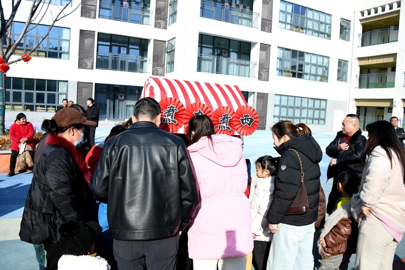 活动在气势昂扬的舞狮表演中拉开序幕。灵动的雄狮在园门口与园内辗转腾跃,红绸飞舞间传递着吉祥如意的美好寓意,明快的鼓点奏响迎新的序曲,瞬间点燃了现场的喜庆氛围,引得孩子们阵阵欢呼。