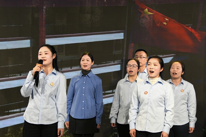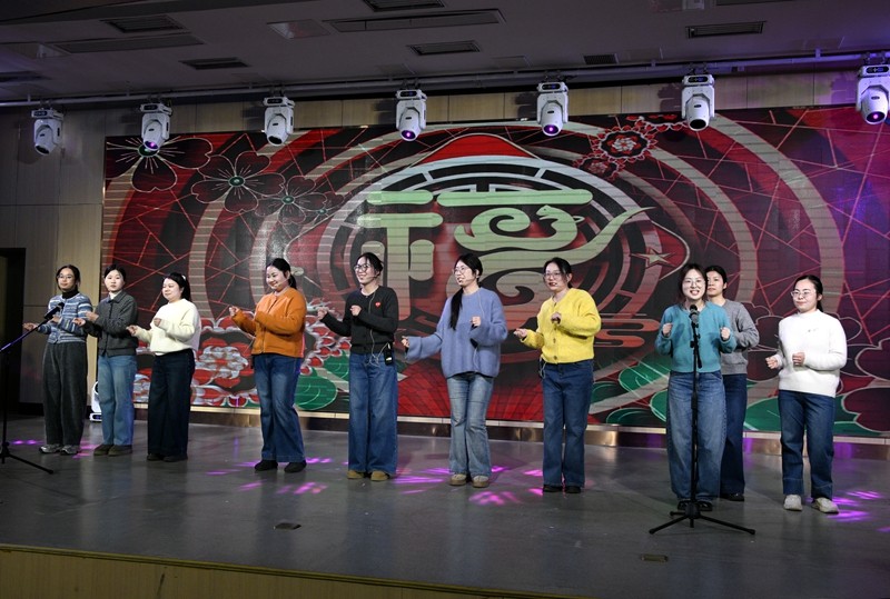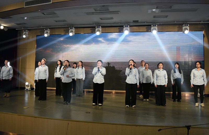 晚会在全场齐唱《我和我的祖国》的激昂旋律中推向高潮,嘹亮的歌声回荡在报告厅的每个角落,爱国情怀与奋进力量在每个人心中激荡。随后,与会领导与全体演职人员合影留念,记录下这一温馨而难忘的时刻。