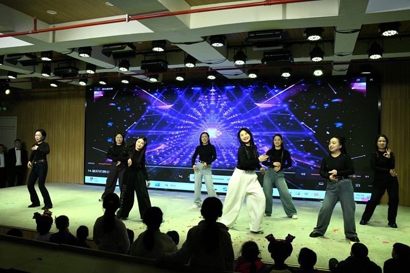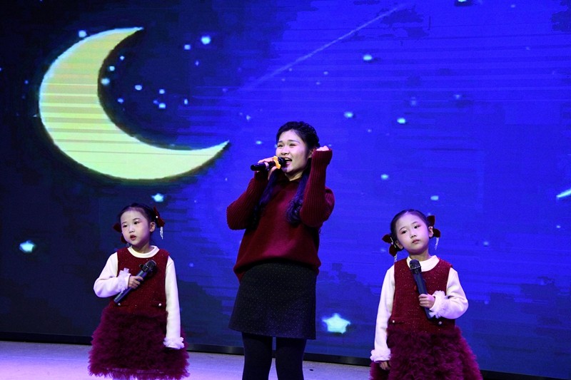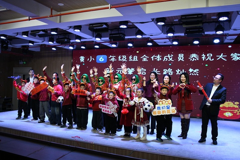 联欢会以“骏马迎春,聚力同行”为主题,现场布置喜庆温馨,节日气氛浓厚。老师和孩子们身着盛装,笑容洋溢,共同呈现了一场精彩纷呈的文艺盛宴。活动在轻松幽默的暖场视频中拉开帷幕,随后,由师生自编自演的各类节目轮番上演:三年级教师带来的活力舞蹈《逐光贺新年》,以动感的节奏点燃全场热情;亲子合唱温馨动人,展现家校共育的和谐画面;歌曲串烧、朗诵、快板、配音秀等节目形式多样,各具特色,充分展现了黄国路小学师生丰富的才艺与积极向上的精神风貌。整场演出高潮迭起,掌声不断,尤其是校领导班子成员压轴出演的舞蹈串烧《最好的舞台》,更以别具一格的表演将现场气氛推向最高潮。