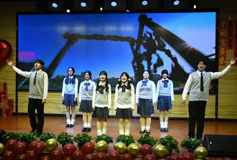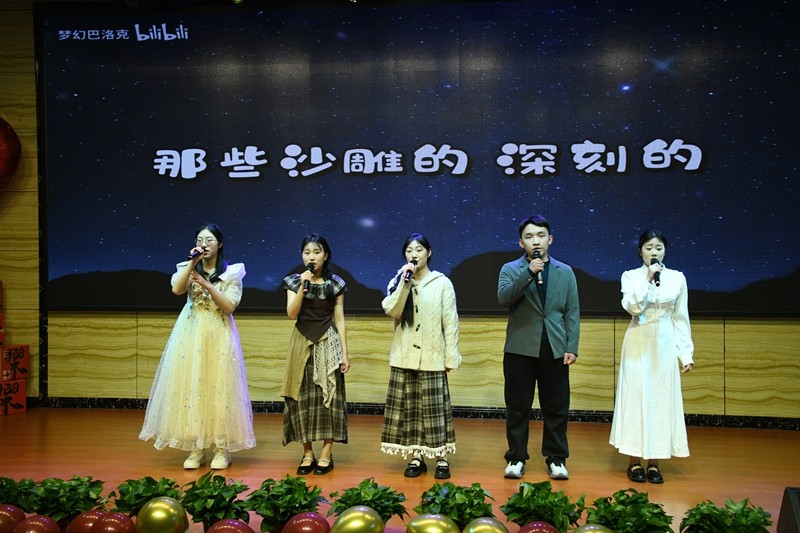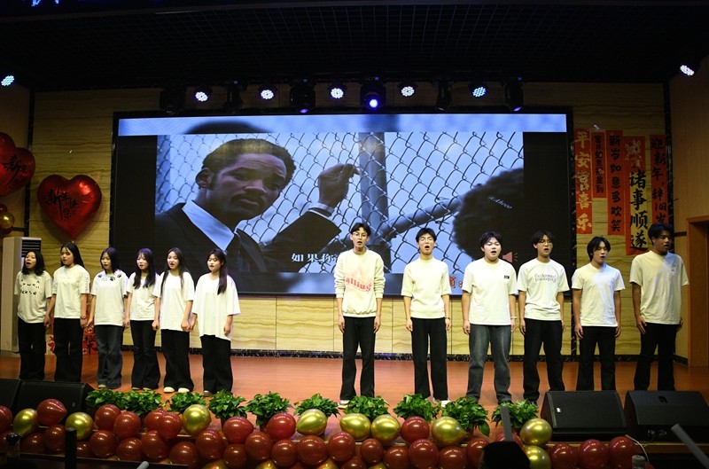 歌曲类节目旋律悠扬、动人心弦。《茶花开了》婉转清新,《唱响我们的星光》激昂励志,《小巷人家》温情脉脉,一首首曲目传递出同学们对生活的热爱与对未来的憧憬。当经典曲目《我的未来不是梦》的旋律响起,现场气氛达到高潮,校领导与师生们齐声合唱,歌声回荡在报告厅内,生动诠释了师生同心、携手筑梦的深厚情谊。吉他弹唱《十年》的怀旧旋律、《演员》的深情演绎,更展现出学子扎实的艺术功底与细腻的情感世界。