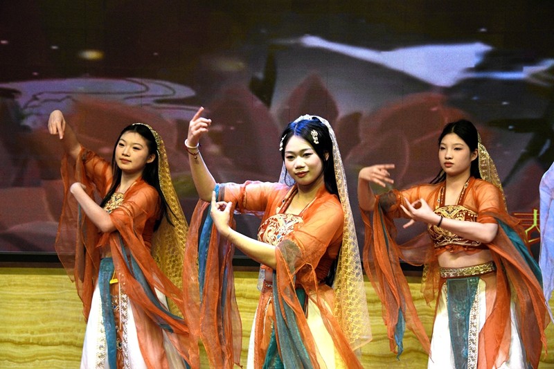 舞蹈类节目则尽显古今交融之美。敦煌舞《丝路幻影》衣袂飘飘,将丝路风情与古典神韵完美融合;古典舞《折柳》舞姿柔美,以肢体语言诉说着千古离情;街舞《Beat顽家》与班级舞蹈《青春不NG 舞力全开》节奏明快、活力四射,用动感舞步展现出新时代职教学子的昂扬锐气,传统与现代的碰撞,为现场观众带来别具一格的视觉盛宴。