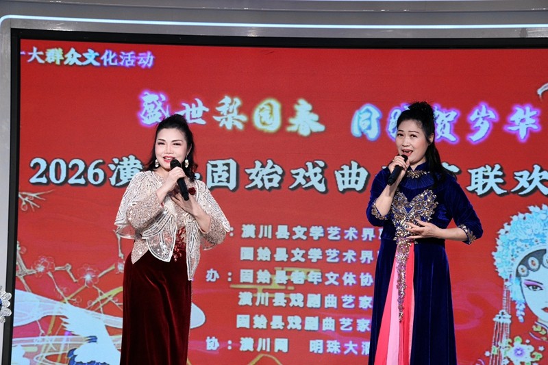 本网讯(李健)1月11日,潢川县明珠大酒店内锣鼓铿锵、丝竹和鸣,潢川、固始两地戏迷汇聚一堂,共同举办“盛世梨园春 同脉贺岁华”——2026潢川·固始戏曲春节联欢晚会,艺术氛围与融融暖意柔和了整个冬天。