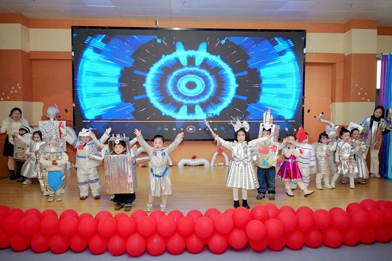 在“科创未来”板块,科技节目《魔法装备展》成为全场焦点。孩子们用充满想象力的表演,描绘了对人工智能等未来科技的奇妙畅想,生动体现了幼儿园在启蒙幼儿科学兴趣、培养创新思维方面的积极探索。团训展示《奋斗,实幼人》以铿锵誓言与昂扬姿态,彰显了全体教职工敬业奉献、团结协作的精神风貌。