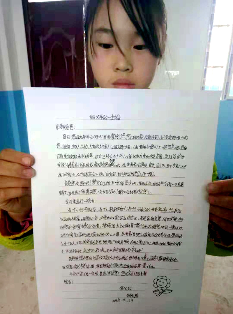 留守儿童们通过写信的方式主动向父母汇报自己情况,有的向父母汇报了自己参加的一些学校开展的活动,有的向父母汇报了自己的学习情况及思想近况,有的向父母表达了思念和感恩之情。个个真情流露,用诚挚的语言在信中诉说自己的心声。