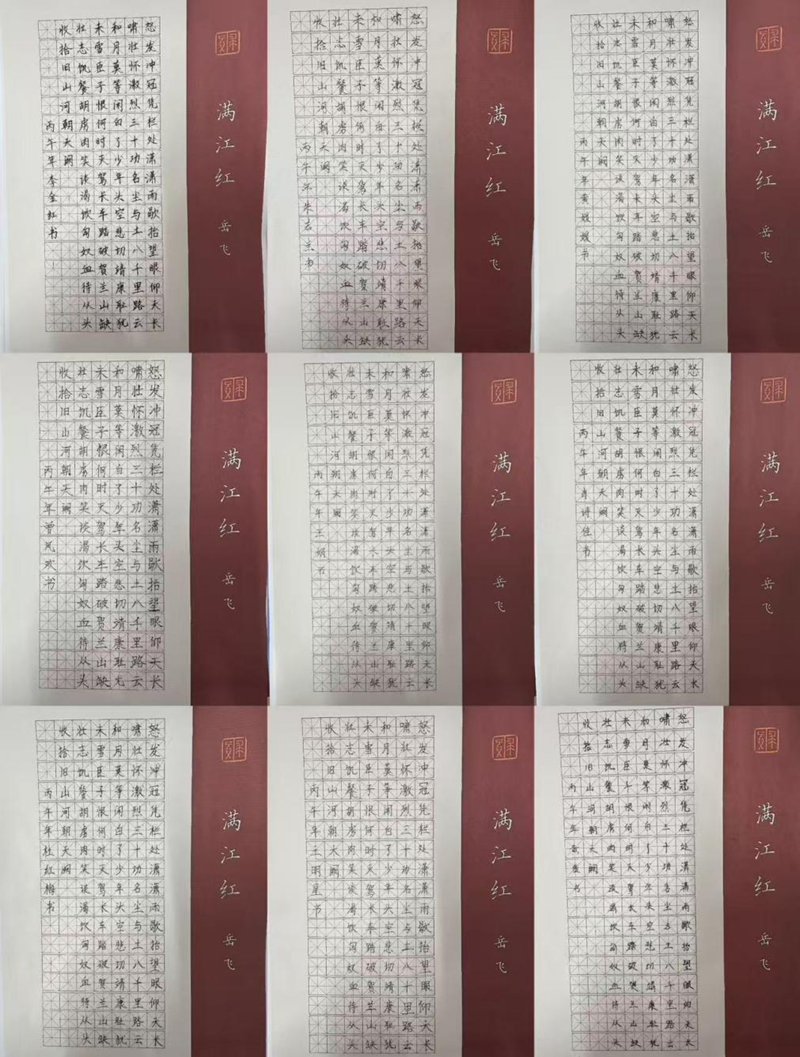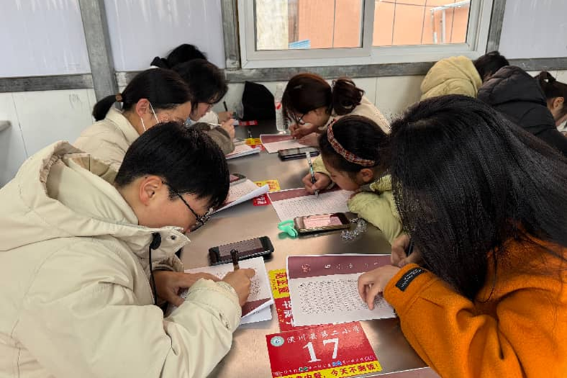 随后,活动转入现场书写。长桌排开,纸笔备齐,女教师们依次落座,凝神静气,提笔挥毫。她们中,有执教数十年的资深教师,笔力沉稳、气韵贯通;也有刚入职不久的年轻教师,字迹清秀、一丝不苟。笔尖在纸上游走,仿佛课堂上的谆谆教诲,化作此刻的专注与从容。一幅幅作品或刚劲有力,或清丽雅致,展现出二小女教职工扎实的教学功底和深厚的文化底蕴。