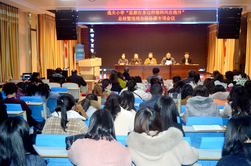 潢川网11月20日讯(张桂兵)11月19日下午,潢川县逸夫小学隆重召开了贯彻“监察在身边师德师风再提升”暨违规办班补课专项整治学习会,校领导班子、两校区全体教师参加了会议。
