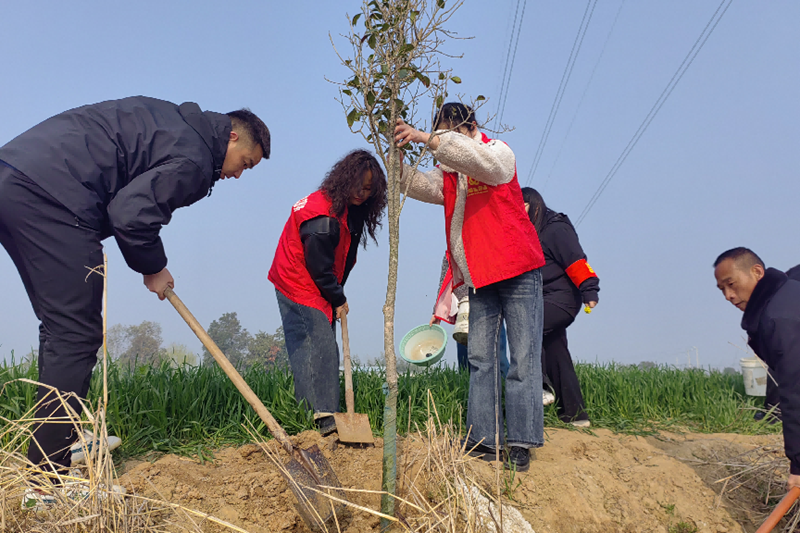 本网讯 春风吐绿,草木初萌。3月12日,在第48个全民植树节到来之际,来龙乡组织机关党员干部前往王寨村东干渠段,开展义务植树主题党日活动,以实际行动践行“绿水青山就是金山银山”理念,为乡村生态增绿,为美丽来龙添彩。