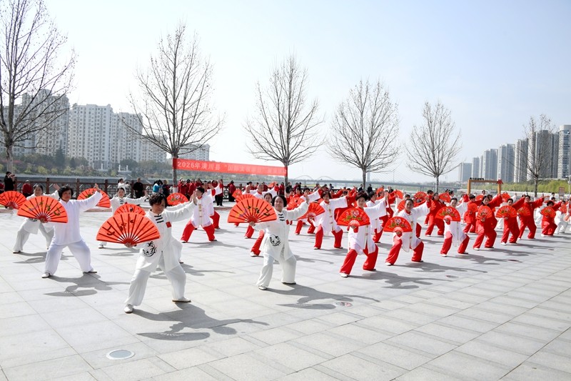 本网讯 3月21日上午,由县教体局体育卫生服务中心主办,县社会体育指导员协会、县武术运动协会共同承办的潢川县首个“国际太极拳日”展演活动在滨河广场举行。主、承办单位相关领导,以及来自全县和光山县共15个站点的300余名太极拳爱好者齐聚现场,以拳会友、以艺传情,共同开启这场传统文化与全民健身交融的盛会。