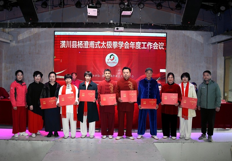 本网讯 3月28日上午,黄河梦一楼宴会厅暖意融融、氛围热烈,潢川县杨澄甫式太极拳学会年度工作会议暨社区教育品牌项目成果展在此举行。县人大常委会原主任胡国平,县体育服务中心原主任谭德林,县教体局领导、学会党建联络员杨世华,县教体局职成教股股长、“光州太极”志愿者服务工作站办公室主任张继军等领导嘉宾,与学会全体班子成员、各辅导站负责人及会员代表欢聚一堂,共叙太极情谊,共话发展新篇。